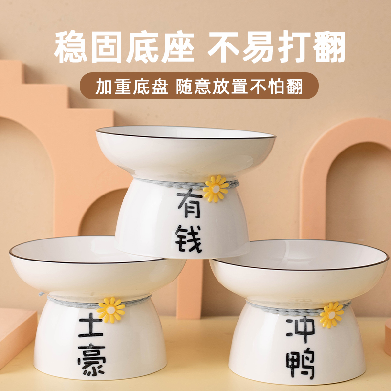 高脚猫碗陶瓷防打翻饭斜口碗猫咪食盆喝水保护颈椎饮水宠物狗粮碗