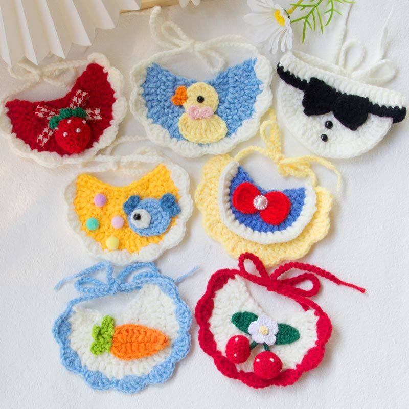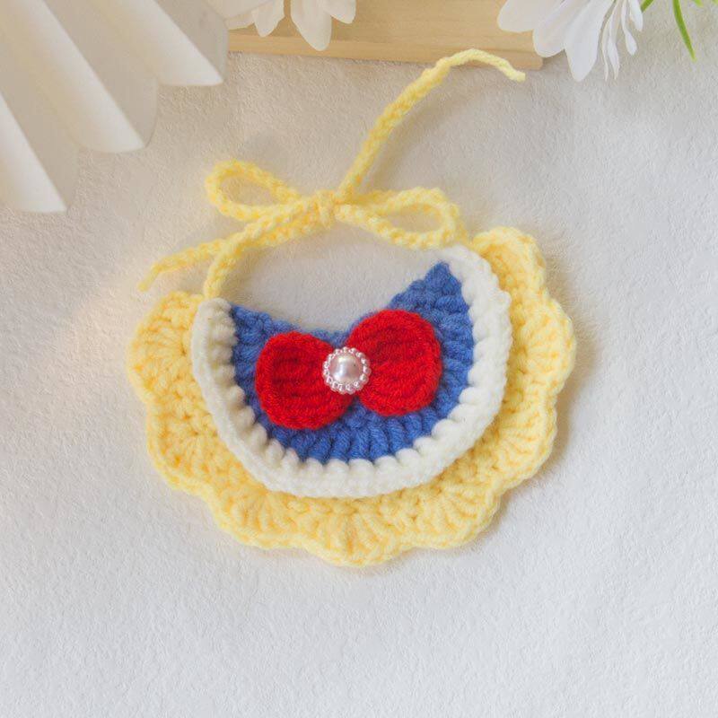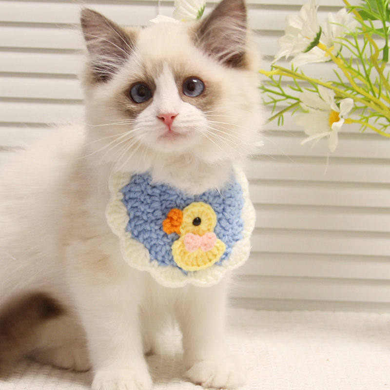 猫咪围兜公猫可爱宠物口水巾手工编织装饰品项圈狗脖圈蝴蝶结配饰