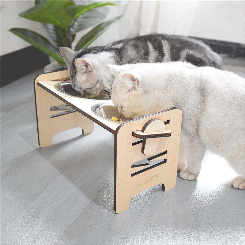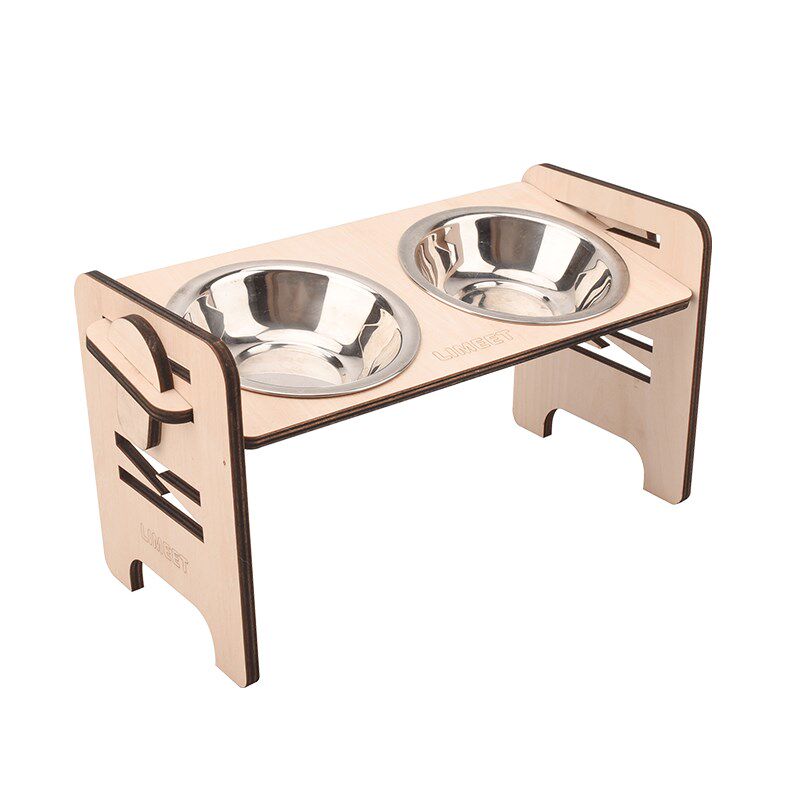 保护颈椎木质6阶高度可调宠物实木餐桌小型犬猫咪不锈钢喂食碗架